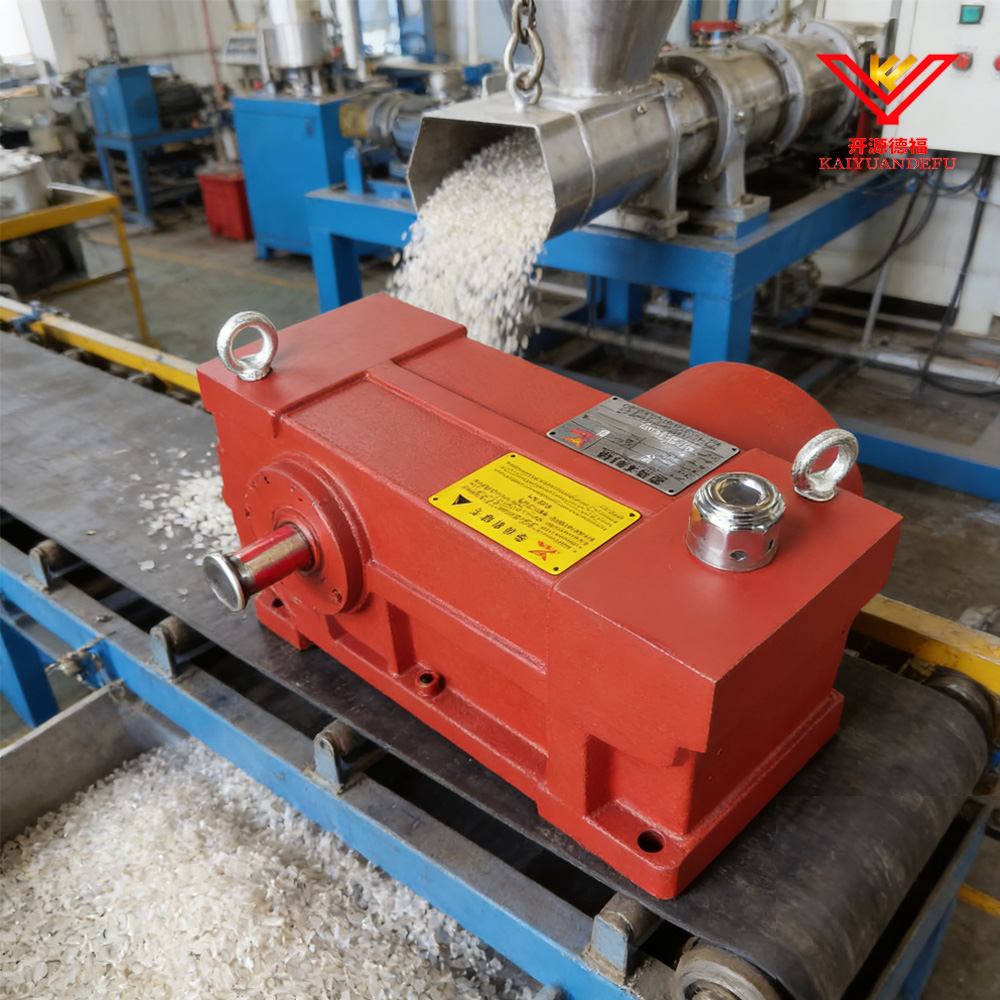 El reductor de peletización de reciclaje de esmalte rojo es una unidad de transmisión de alto rendimiento que se caracteriza por su acabado de esmalte rojo resistente a la corrosión y su diseño estructural robusto, diseñado para las rigurosas demandas de los equipos de reciclaje de plástico.