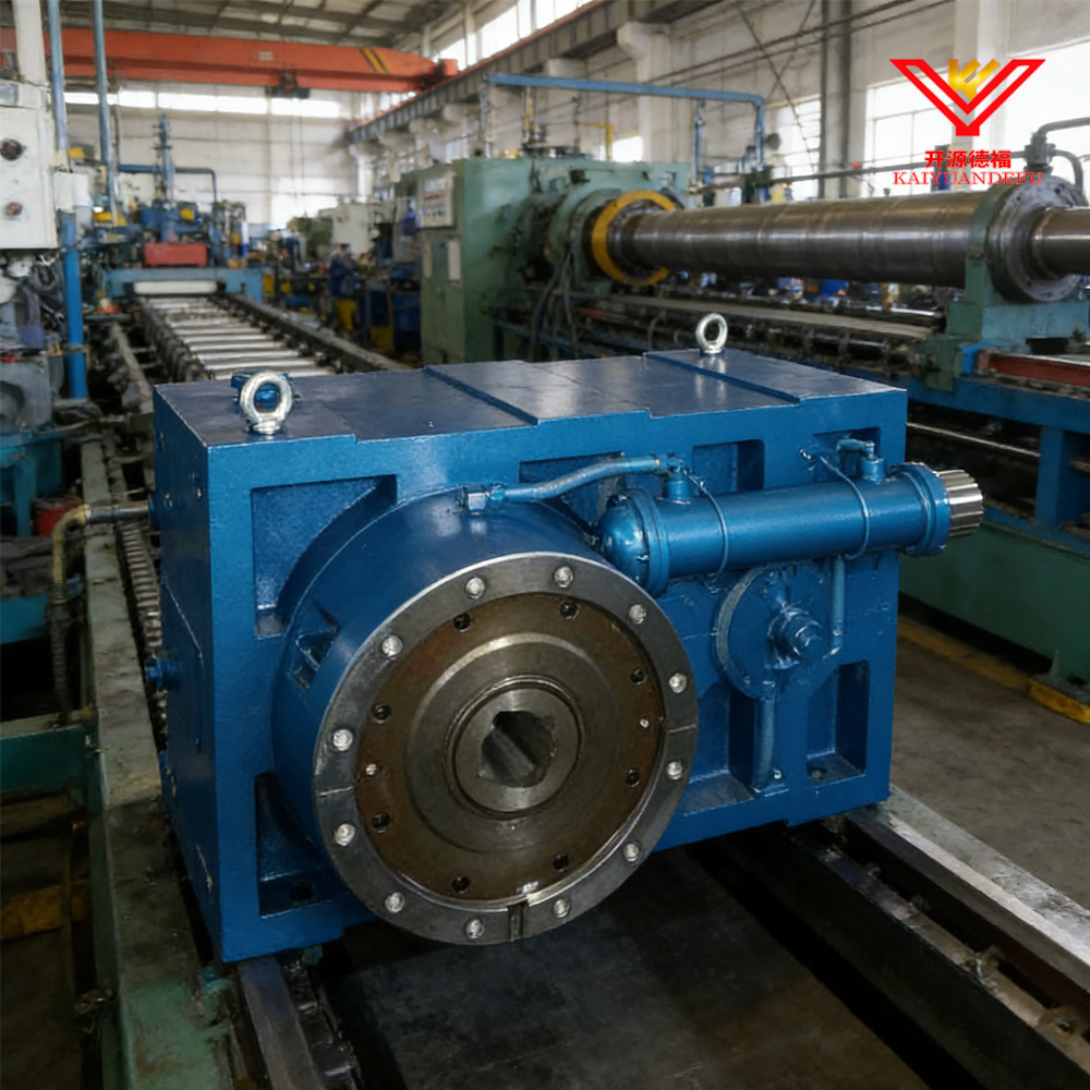 El reductor de extrusión de caucho azul con enfriador de aceite lateral es una unidad de transmisión de potencia robusta diseñada para un funcionamiento continuo de servicio pesado en líneas de extrusión de caucho.